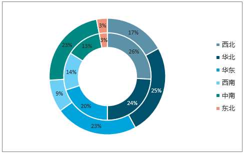 2017年以来,国内风电新增装机转移趋势持续。华东及中南区域装机快速增加。目前主要的风电运营商均以东南部区域作为自己开发运营的重要方向,减少限电带来收益的不确定性,未来风电向中东部转移的趋势仍将持续。