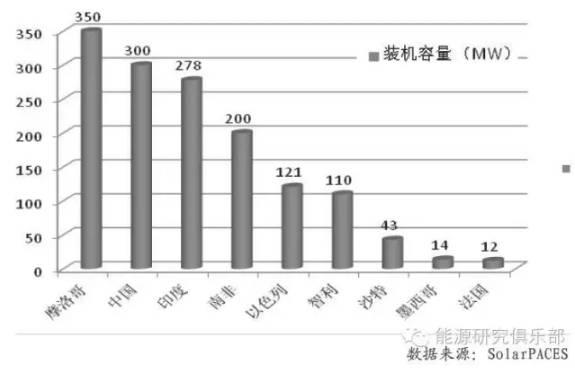 图2:各国在运太阳能光热发电站装机容量(截至2015年12月)