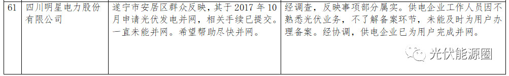 2018年5月,国家能源局12398能源监管热线(以下简称12398热线)共收到有效信息7933件,环比增加18.81%。 投诉举报反映的问题主要集中在电力行业、新能源和可再生能源行业。 新能源和可再生能源行业主要反映了部分地区分布式光伏发电项目相关费用结算不及时、并网存在困难等问题。 解决结果如下: