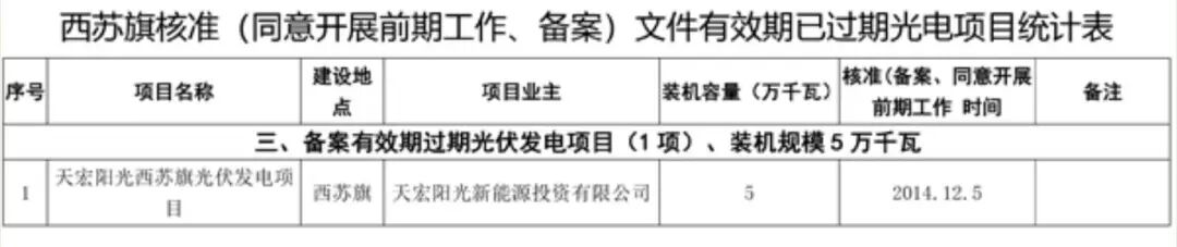 1、阿旗:光伏发电备案文件有效期过期项目1项,装机规模2万千瓦。