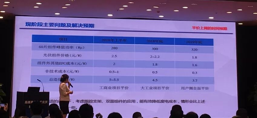 另外,据王淑娟分析,2018年底,预计大部分光伏系的造价会降低到4.5元/W,到2019年底,预计大部分光伏系的造价会降低到3.7元/W以内。
