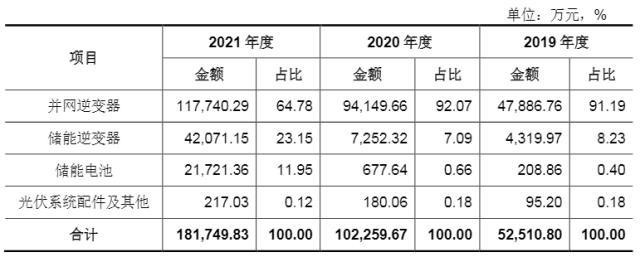 从营收来看,并网逆变器是首航新能源绝对的“拳头产品”,近三年营收分别约为4.8亿元、9.4亿元、11.8亿元。但相比头部企业华为、阳光电源等仍存在较大差距,与固德威、上能电气等企业较为接近。
